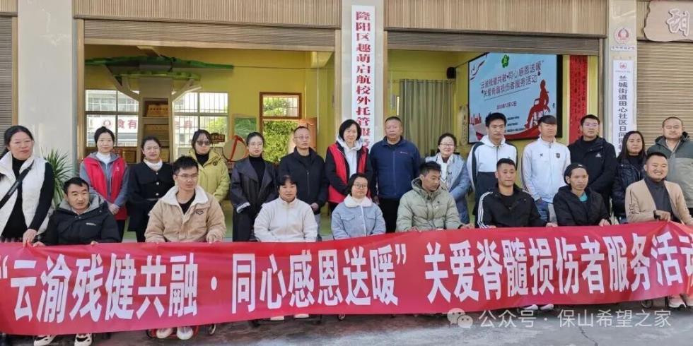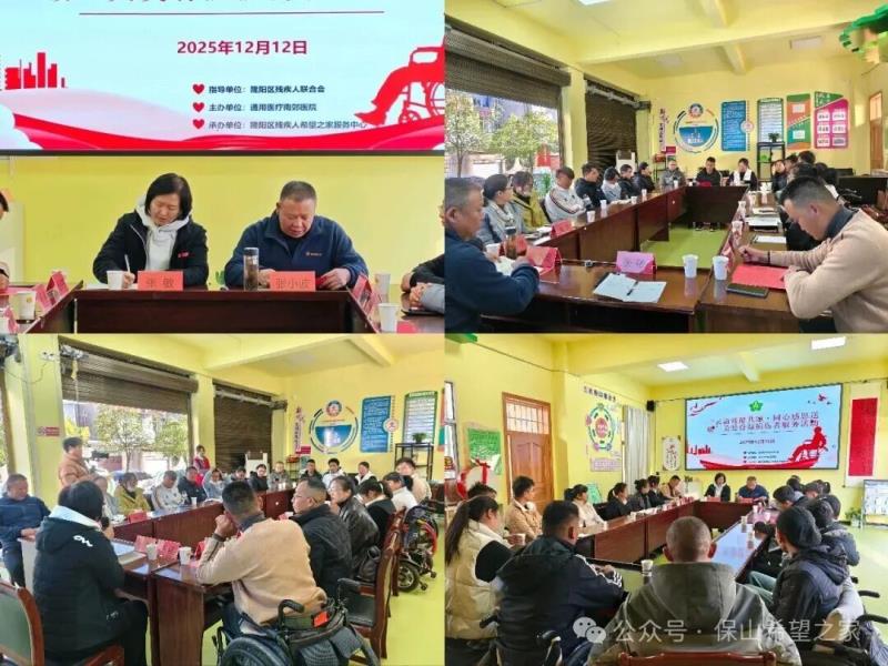 为深入践行“残健共融”理念,贯彻落实扶残助残政策,切实保障脊髓损伤伤友的生活与康复权益,12月12日-13日,由重庆通用医疗南郊医院(重庆市脊髓损伤者自助互助康复服务基地)主办、保山市隆阳区残疾人希望之家服务中心承办的“云渝残健共融·同心感恩送暖”关爱脊髓损伤者服务活动在隆阳区残疾人联合会温情启幕。