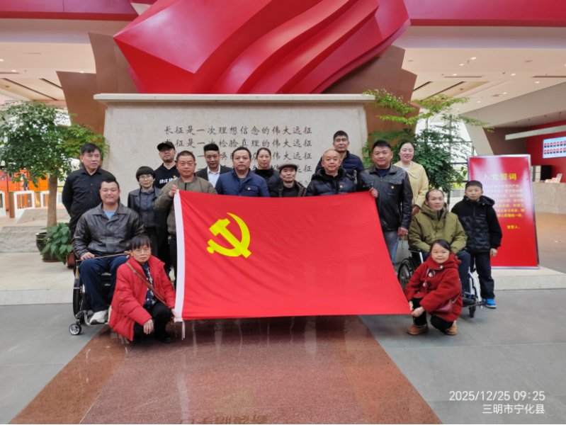 12月25日,全体参加人员走进宁化县革命纪念馆开展沉浸式研学。现场谢启明等6名肢协会员在党旗下重温入党誓词,随后还开展了微党课《万里长征第一步,精神丰碑永不朽》。