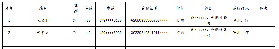2026年“威高爱脊柱侧弯公益救助项目” 救治对象公示表