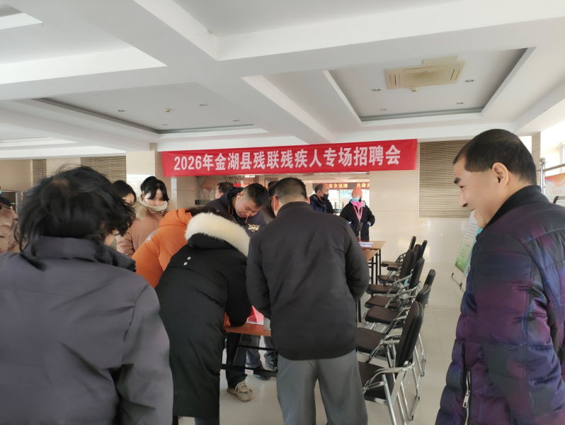 为贯彻落实好省市今年残疾人就业援助月活动要求,金湖县残联于1月28日上午,在县残联一楼服务中心大厅举办了2026年“一季度”残疾人就业援助月专场招聘会。参加这次招聘会的,有来自全县来自各镇街50名有就业需求的残疾人和县属12家有爱心能够给残疾人代来暖心岗位的企业代表。