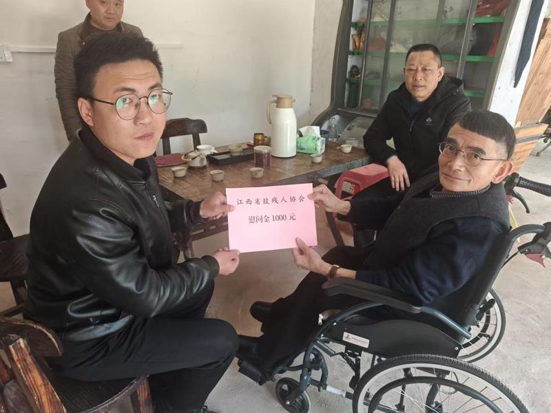 在困难重度残疾人陈志强家中,罗琪主席与陈志强促膝长谈、亲切交流,一边细致察看居住环境,一边耐心询问其身体康复进展、日常诊疗用药、家庭照料情况,重点了解低保、残疾人补贴、医疗救助等生活保障政策的落实成效。得知陈志强因身体原因行动不便,家庭主要依靠亲属照料,生活存在一定压力时,罗琪主席暖心安慰,鼓励他保持乐观心态,积极配合康复治疗,叮嘱家属悉心做好日常照料,有困难及时向肢协及相关部门反映。随后,罗琪主席为陈志强送上1000元慰问金,反复叮嘱他注意身体保暖和居家安全,让其切实感受到党和政府的牵挂与关爱。