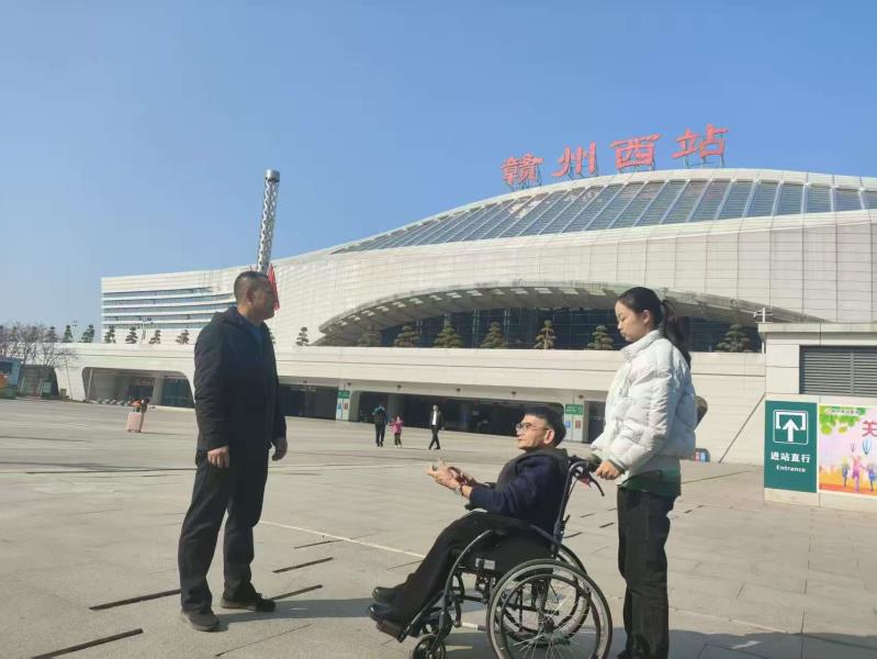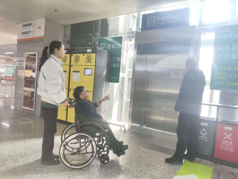 慰问结束后,罗琪主席一行前往赣州西高铁站,聚焦春节期间残疾人出行需求,实地调研站内无障碍设施建设、管理及使用情况,先后查看了无障碍停车位规划、标识指引、无障碍电梯运行等关键环节,亲自体验设施使用便捷度,认真记录设施使用中存在的不足和优化空间。