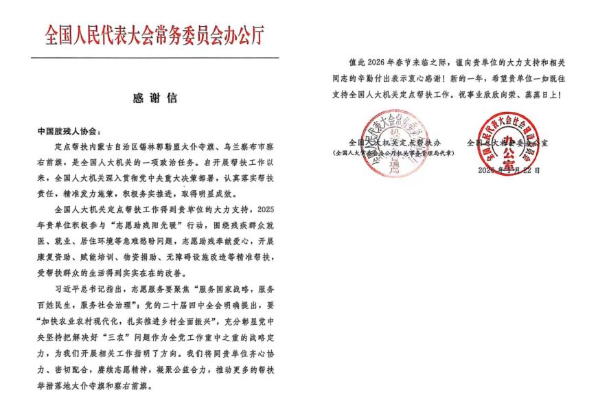 全国人民代表大会常务委员会办公厅感谢信