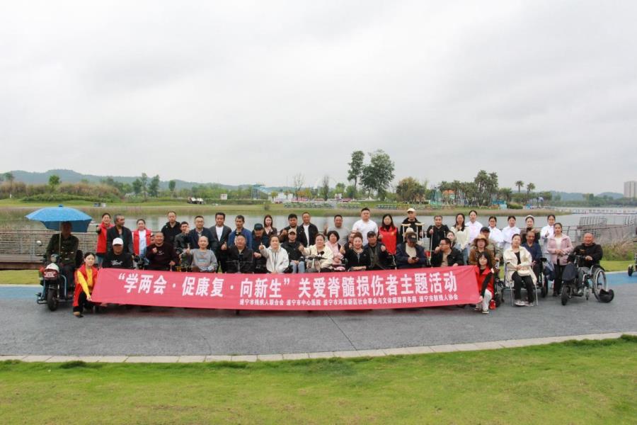 为深入学习贯彻2026年全国两会关于“完善残疾人社会保障制度和关爱服务体系”的重要精神,帮助更多脊髓损伤残疾人走出家门、融入社会,4月14日,由遂宁市残联、遂宁市中心医院、河东新区社事旅商局、遂宁市肢残人协会联合主办的“学两会·促康复·向新生”关爱脊髓损伤者主题活动在河东新区举行。来自全市的脊髓损伤残疾人代表、市肢协全体委员、医疗专家、同侪导师、爱心组织代表及助残服务志愿者等70余人参加活动。