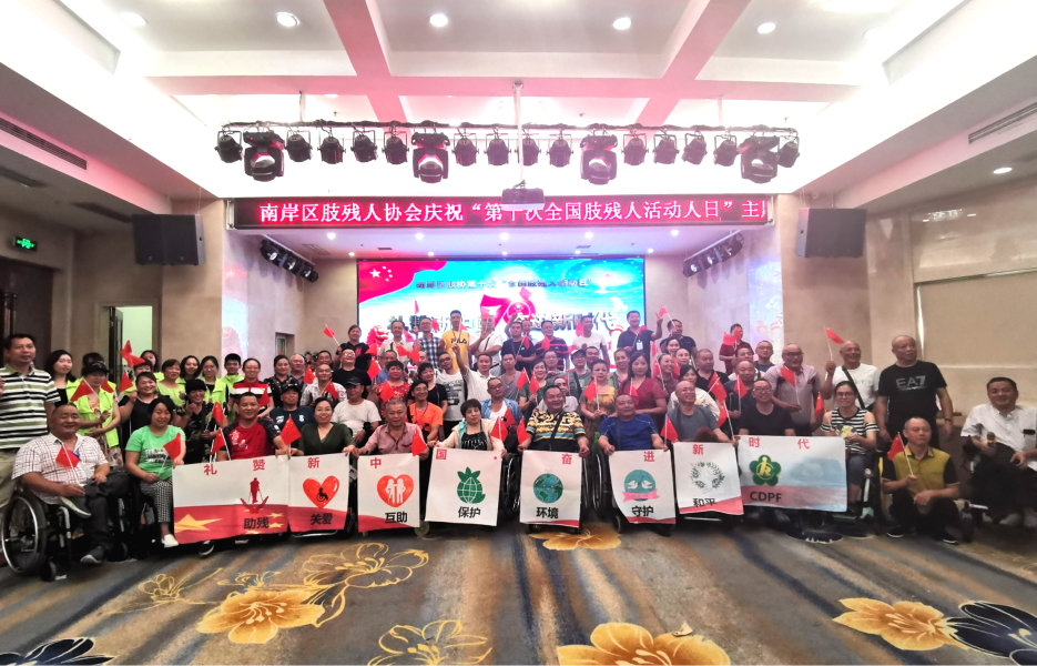 爱国主题学习、急救知识培训、健身臂力比赛、齐唱赞歌颂祖国……2019年8月11日,正值第十个“全国肢残人活动日”,南岸区肢残人协会邀请了70余名肢体残疾人代表相聚在格瑞特酒店,共同参与“悟初心、记使命、跟党走”——《礼赞新中国、奋进新时代》主题活动,庆祝新中国70华诞、讴歌改革开放巨大成就,祝愿祖国更加繁荣昌盛。