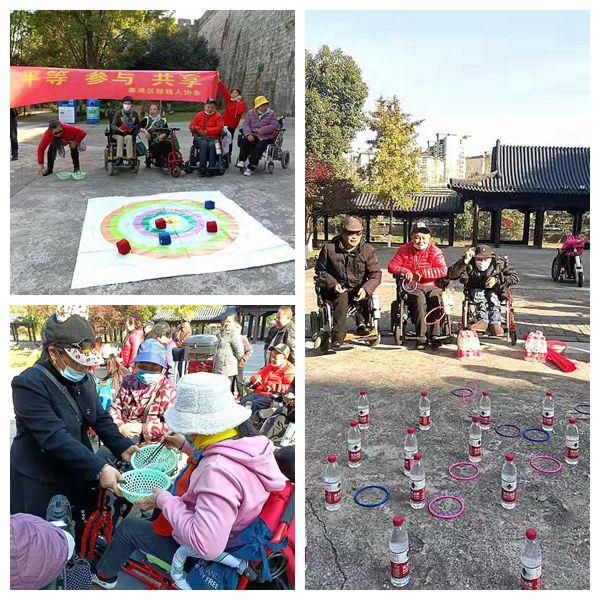 为了增加残疾人的幸福感和满意度,丰富残疾人的业余文化体育生活,鼓励更多的残疾人朋友特别是重度残疾人走出家门,亲近社会大自然,树立残疾人自强不息的信心和勇气,在秋高气爽的日子里,2021年11月13日下午,南京市秦淮区肢残人协会组织了近40余名残疾人来到了武定门公园,其中有25位重度残疾人,他们坐着轮椅,在家人的陪伴和志愿者的帮助下,来到武定门公园,大家欢聚在一起,他们虽然坐在轮椅上,身有残障,可他们每个人的脸上洋溢幸福的笑容,为这次活动,秦淮肢协特意为重度残疾人朋友量身打造并准备了一些趣味活动,其中有套圈、飞镖、扔沙包、唱歌、拣弹子和猜谜语等有益身心健康的活动项目。既开动脑筋,又锻炼了身体,此次活动的开展,得到了残疾人喜爱。秋高气爽,沐浴阳光,每个人的脸上满满的幸福和快乐。
